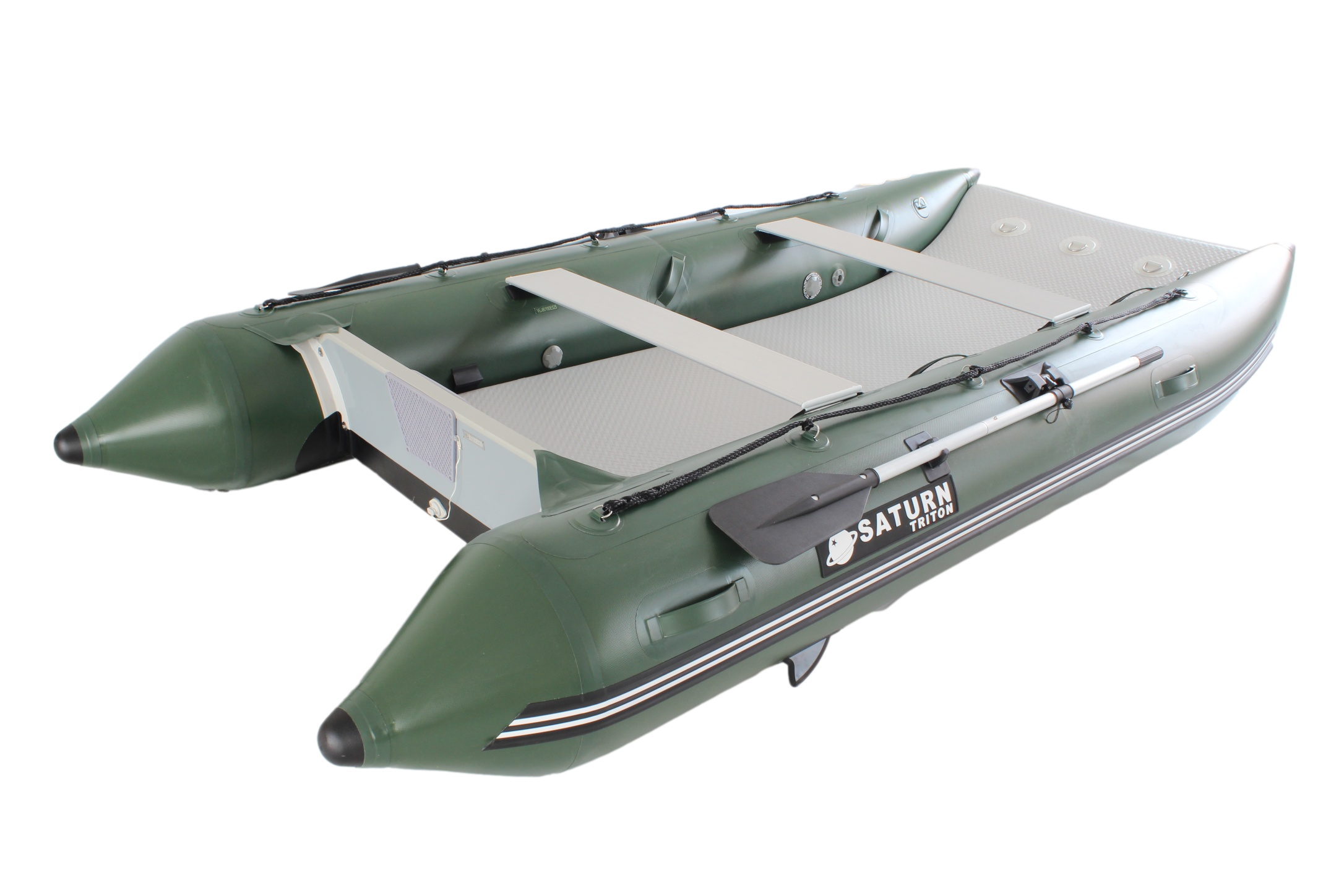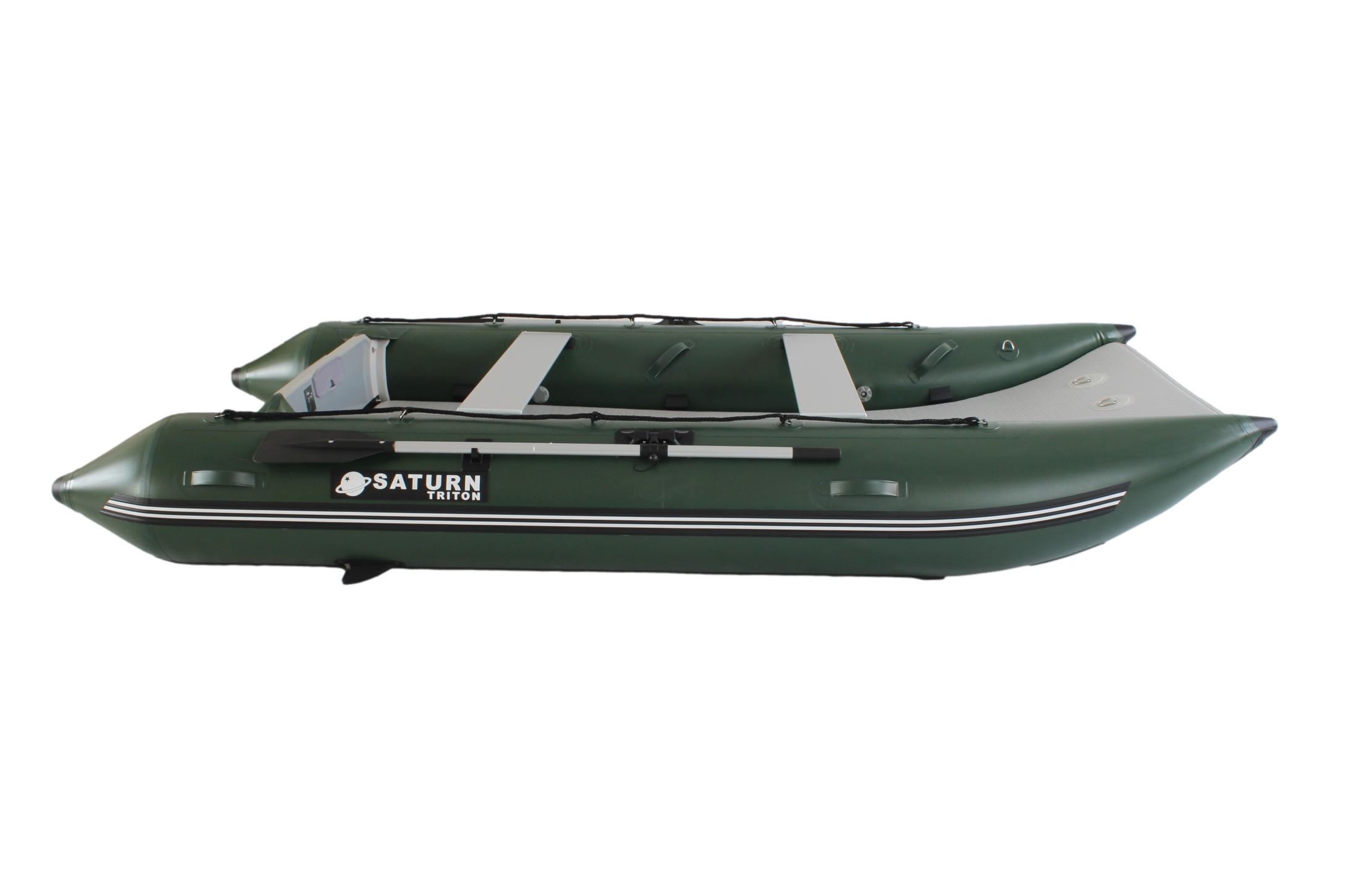 • Extremely lightweight, portable, low draft sleek design.2025/2026 12' Saturn Triton Inflatable Catamaran (Green)