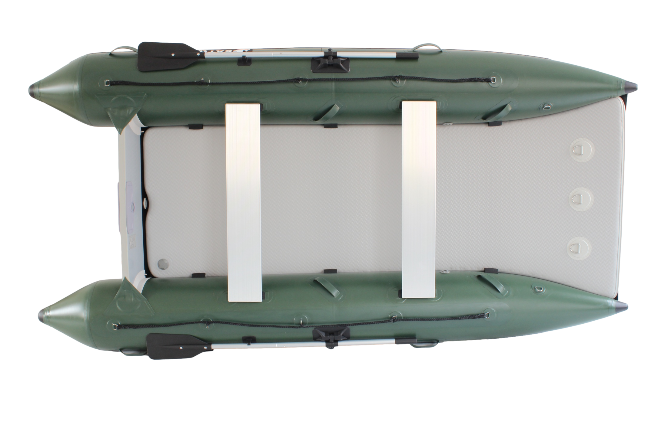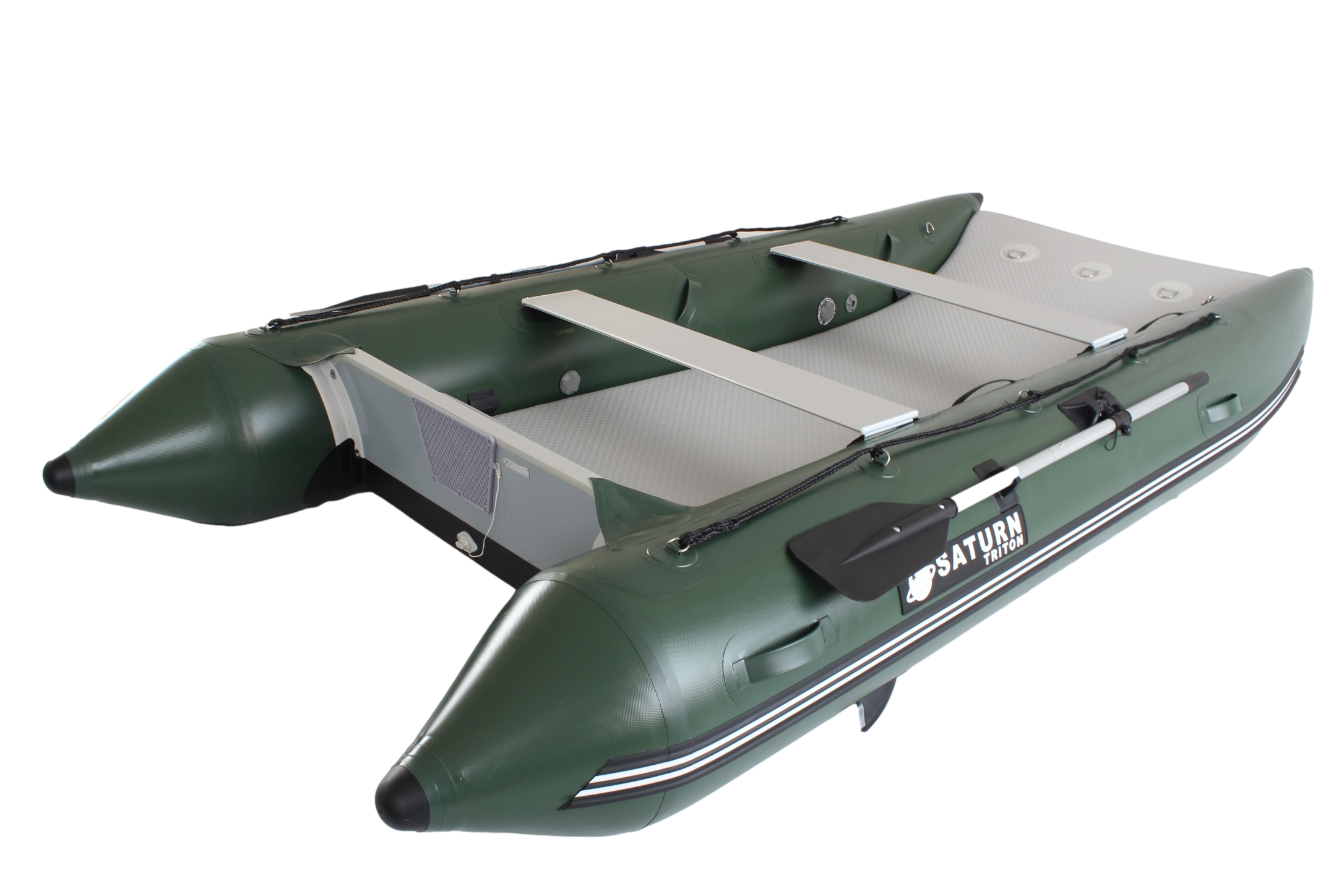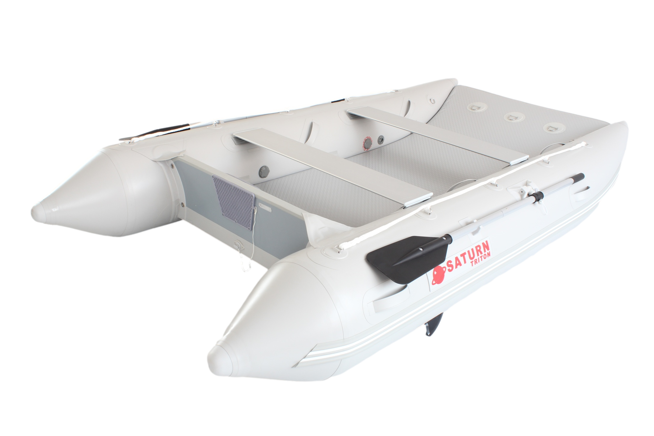 The 11' Saturn Inflatable Catamaran TRMC330 is the little brother our our 12' model and is turning heads all over the world and include new upgrades like our extra reinforced hull, improved mechanical transom connection, transom drain port, and more. It is better suited than the smaller TRMC290 version for larger vessels as a tender or transfer boat to get you from sea to shore. It's a fantastic fishing/diving boat with the portability to rival any other inflatable boat. The 5 separate inflatable chambers provide greater safety on the water. The TRMC330 is a very stable boat and is perfectly suited for either a small outboard motor or with an inexpensive electric motor.