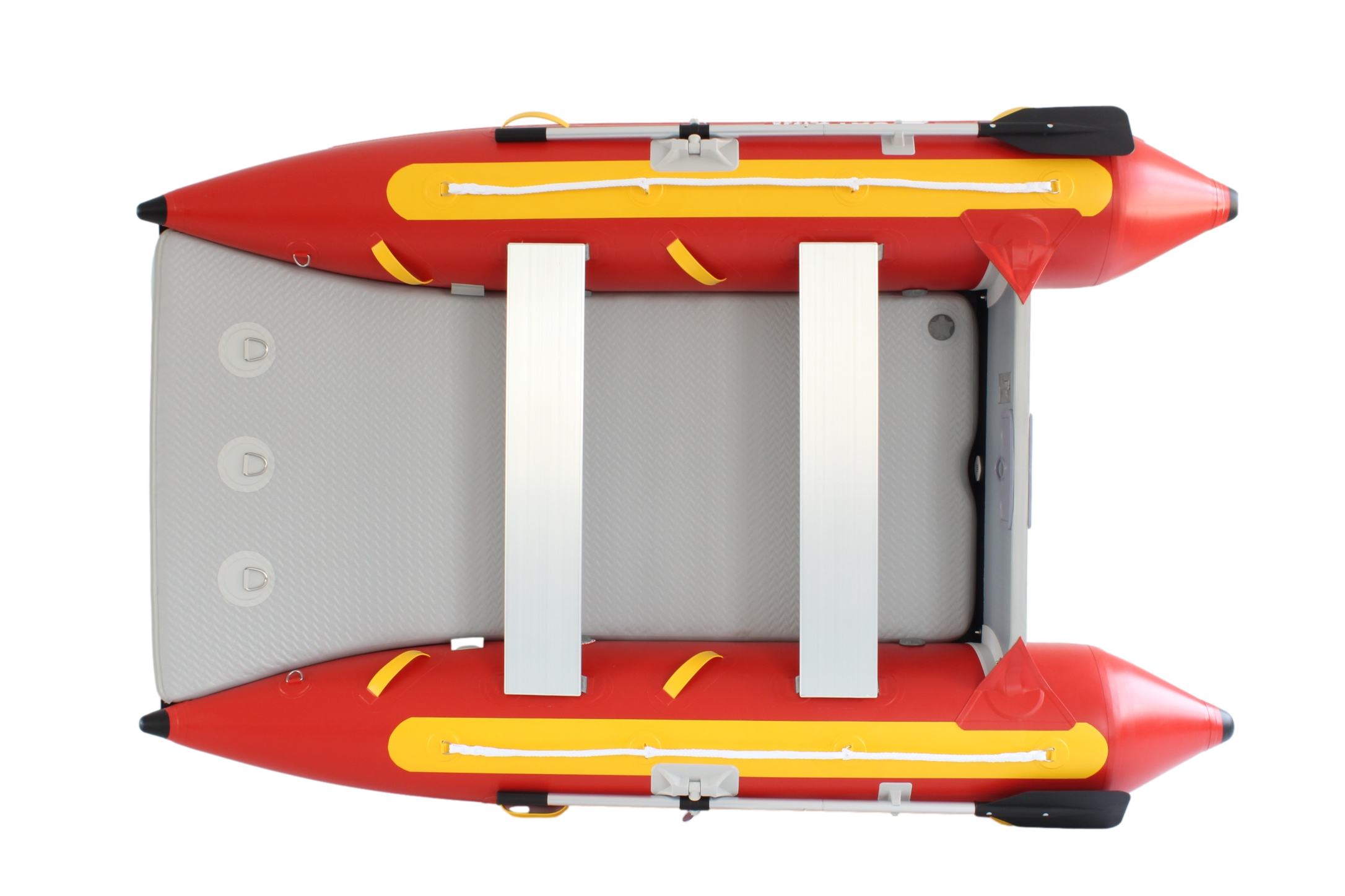 The new Triton models are coming in-stock in June! The Triton Series upgrades for 2025/26 represent our largest ever upgrade package and include over $500 additional value. The Triton upgrades offered for the Saturn Catamarans include our heavy-duty 35 OZ Suijia 1.2mm 2000 Denier PVC ($300 value and nearly 50% thicker than our Standard model), UK imported Leafield D7 inflation valves ($150 value), Leafield PRV pressure relief valves on both tubes ($80 value), fiberglass coated marine grade plywood transom, 2000 cc capacity 7.2psi barrel pump ($50 upgrade), and an extended 3-year warranty. The boat technical specifications are nearly identical between the Triton model (TRMC330) and our standard version (MC330) but these Triton series improvements incorporate the newest technologies in inflatable boat construction and provide an incredible value for those looking to put their boat to the test.2025/2026 9'6" Saturn Triton Inflatable Catamaran (Red)