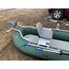 This is a unique product that can cover all sorts of uses and many of our customers are looking for a very narrow raft option that can handle tightly constrained rivers as seen in the picture above on a successful moose hunt in Alaska (the pictures shows our older version standard 12' Saturn Raft/Kayak which is a similar product but without all of the upgrades shown above). Many of our customers have begun using it with a rowing frame and we have provided several custom NRS rowing frames to suite their needs. The most popular frame we have customized is a modified two (or 3) seat fishing frame which is shown in the pictures below on the prior model 12'6" Saturn Whitewater Raft. It's a truly awesome setup and with a package price (including Raft and Frame) just under $4,500 it's an incredible value.