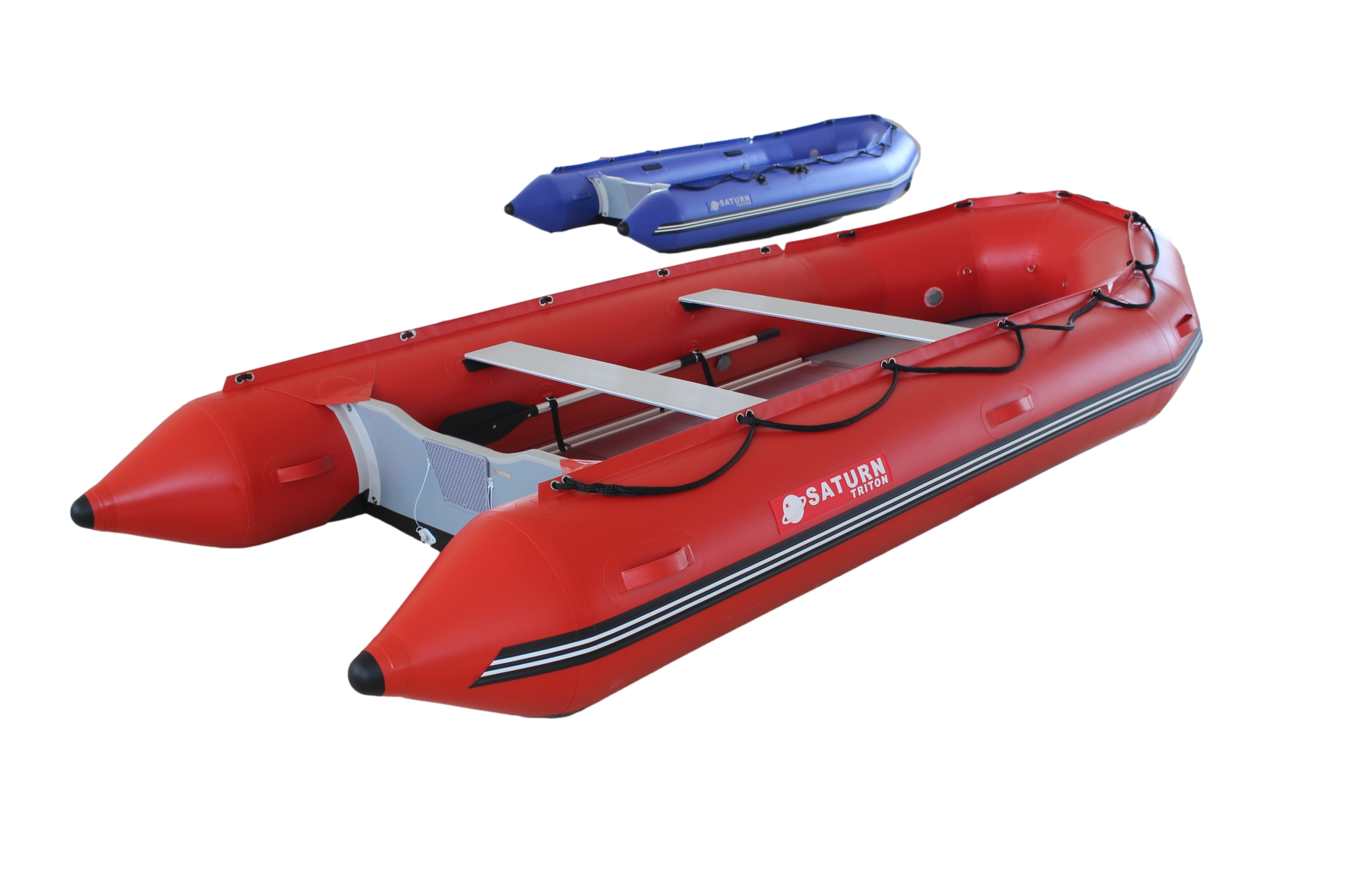 The 14' Saturn Inflatable Boat is made with our standard 1,100 Dtex PVC with a high density polyester fabric. It has excellent resistance to tearing, tension, abrasion and puncture. The heavy-duty outer PVC layer helps protect against UV rays, ozone and abrasion while the inner layers provide additional strength and support. The double layers of fabric at the bottom of the tubes and rub-strake protector along the keel provide extra protection from sharp rocks and abrasive sand. The pressure relief valve will prevent excessive air pressure in the boats chambers.