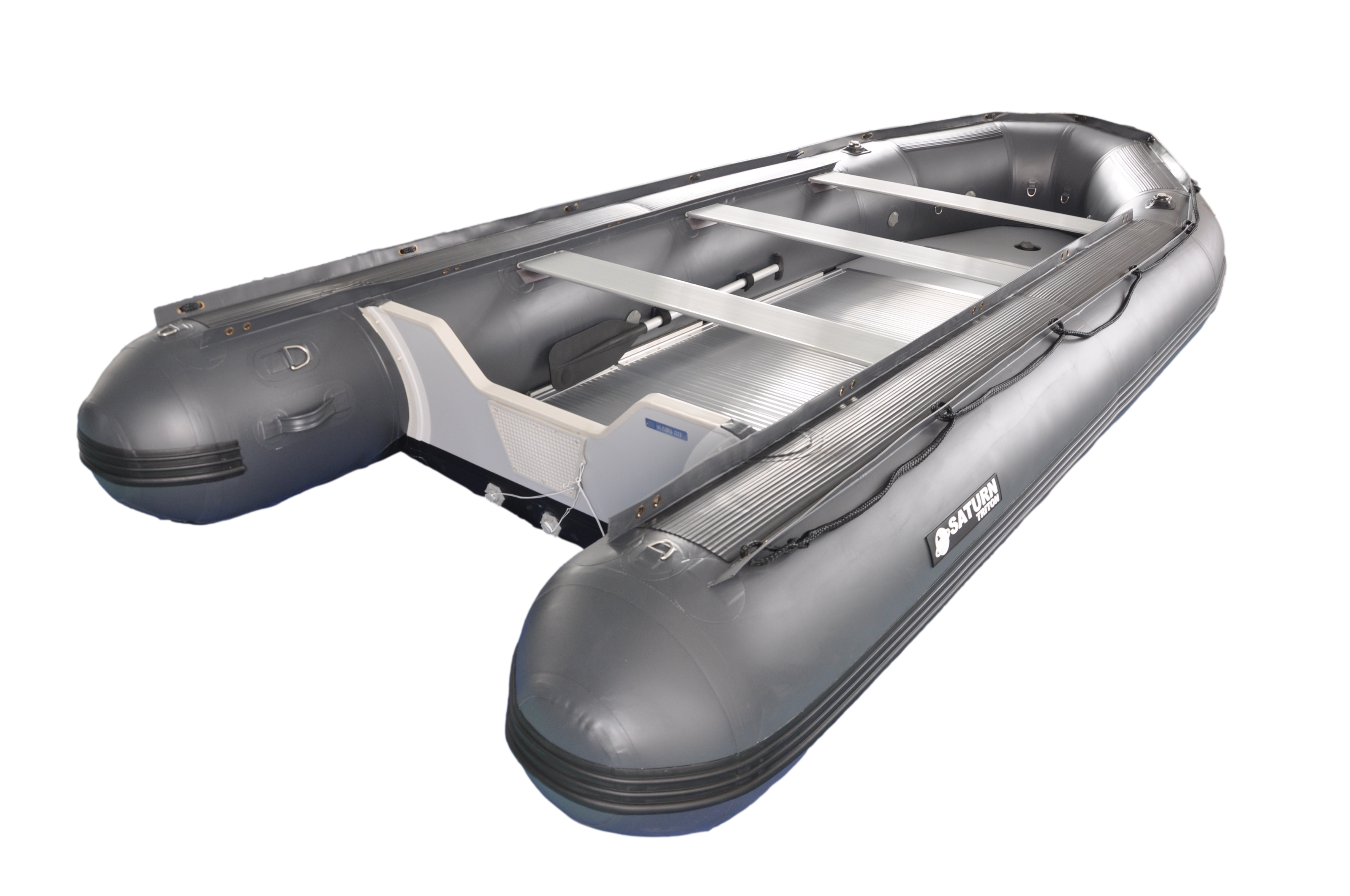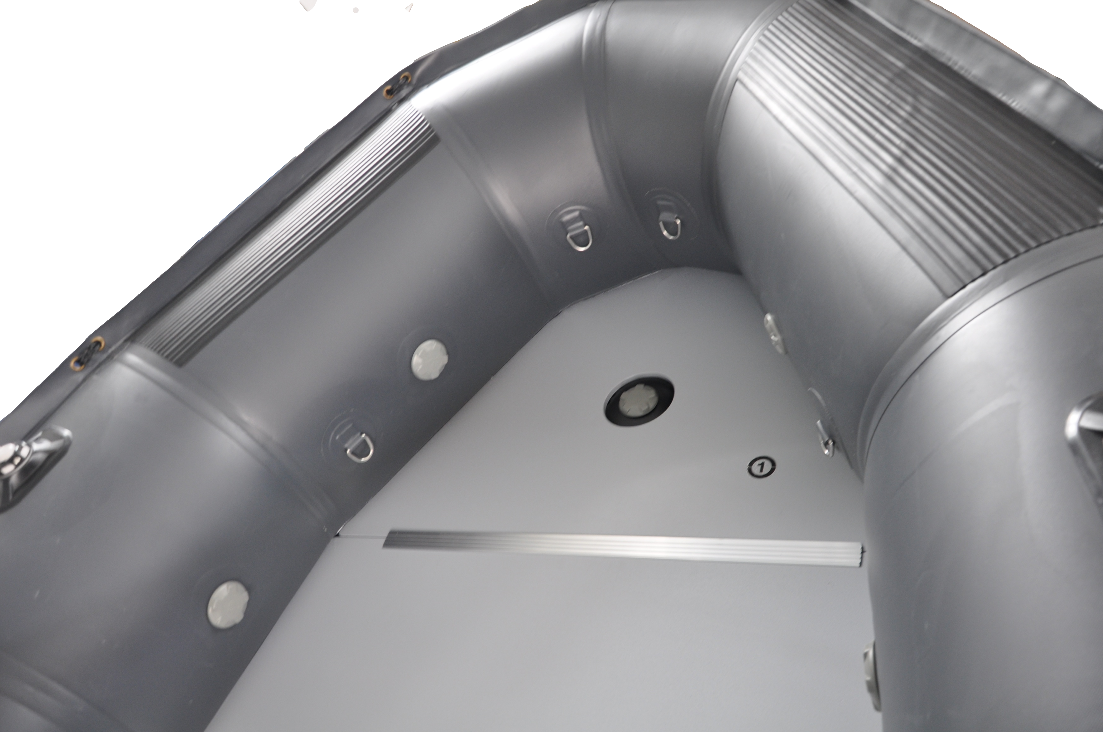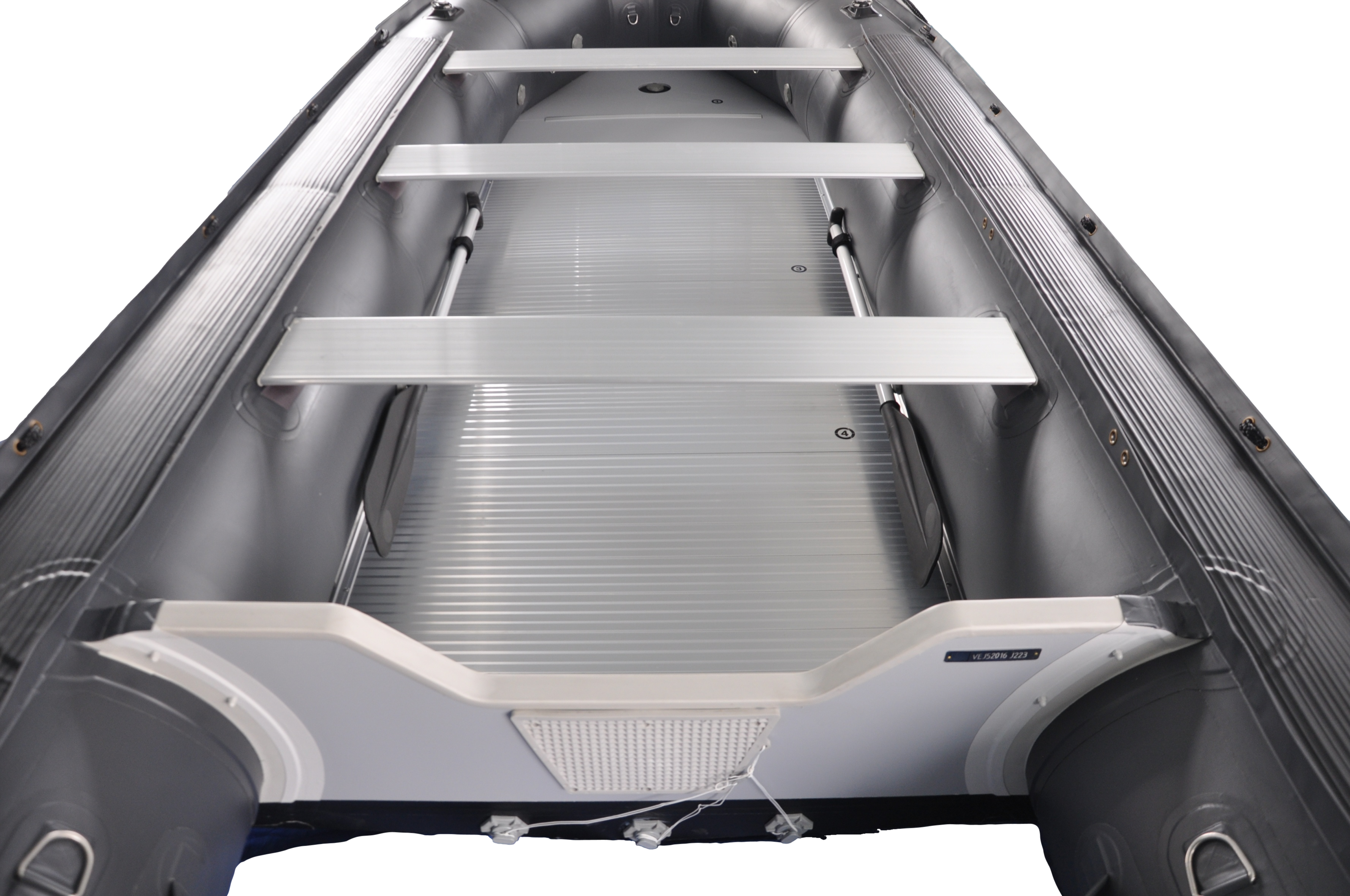 The Saturn HD470 inflatable boat comes with a 5 section heavy-duty aluminum floor. Please note that the side tubes and keel must be inflated between 2.5-3 psi to avoid excess strain on the aluminum floor.