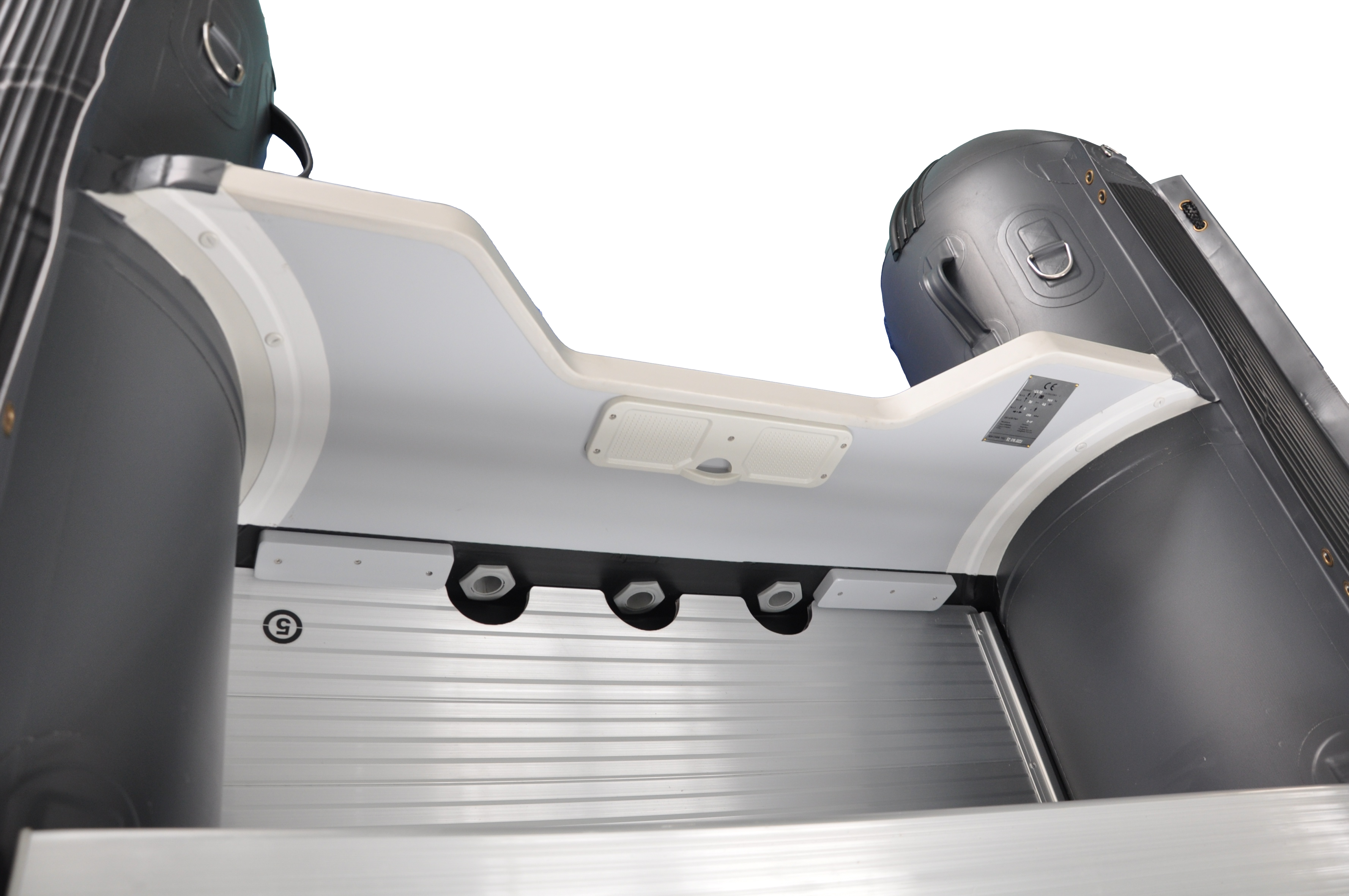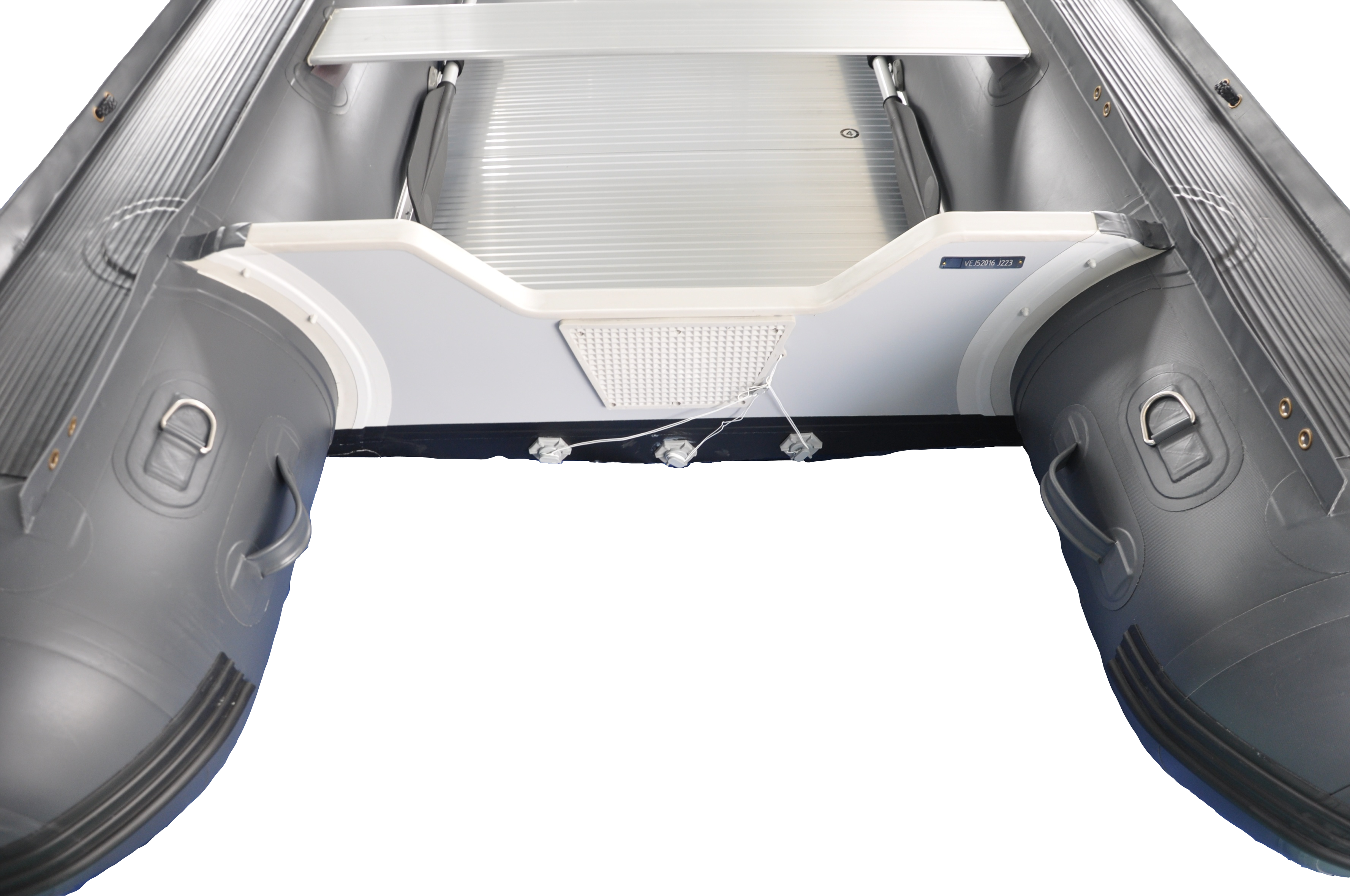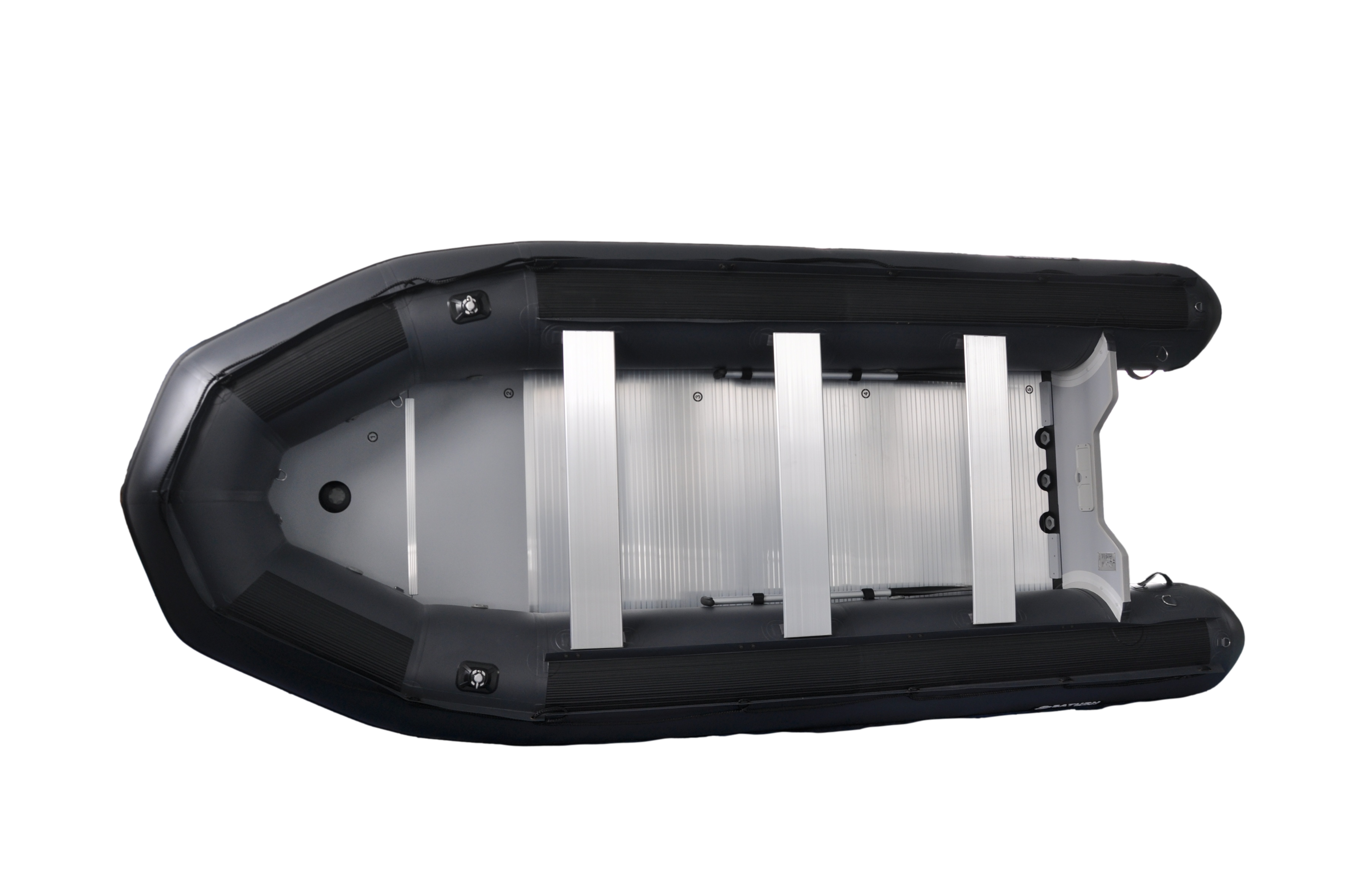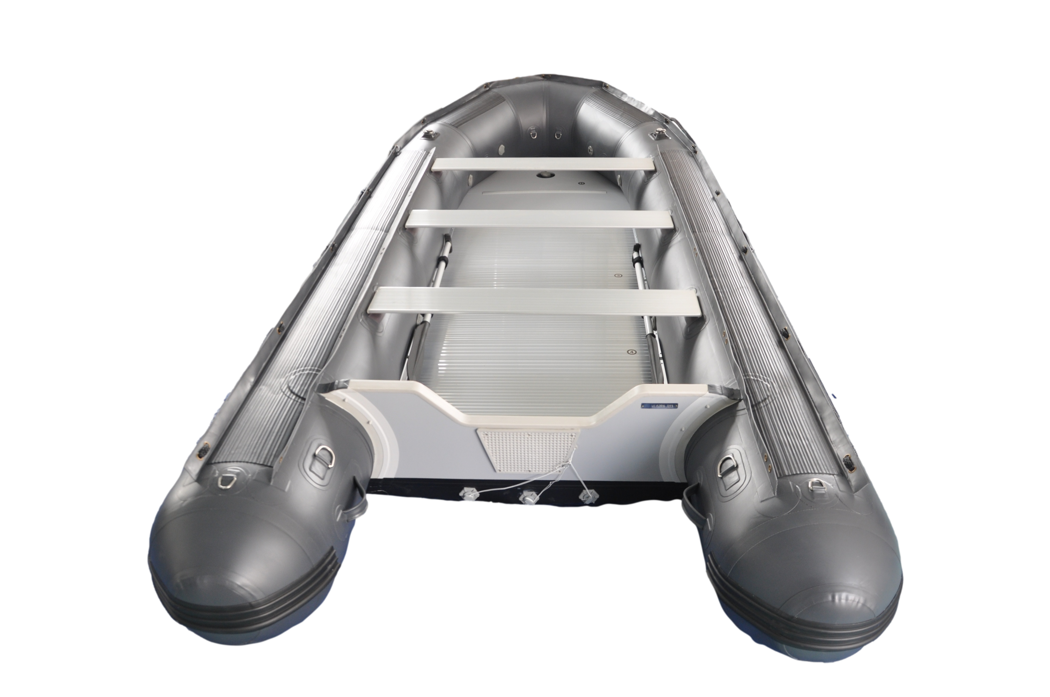 The Saturn HD470 inflatable boat comes with a 5 section heavy-duty aluminum floor. Please note that the side tubes and keel must be inflated between 2.5-3 psi to avoid excess strain on the aluminum floor.