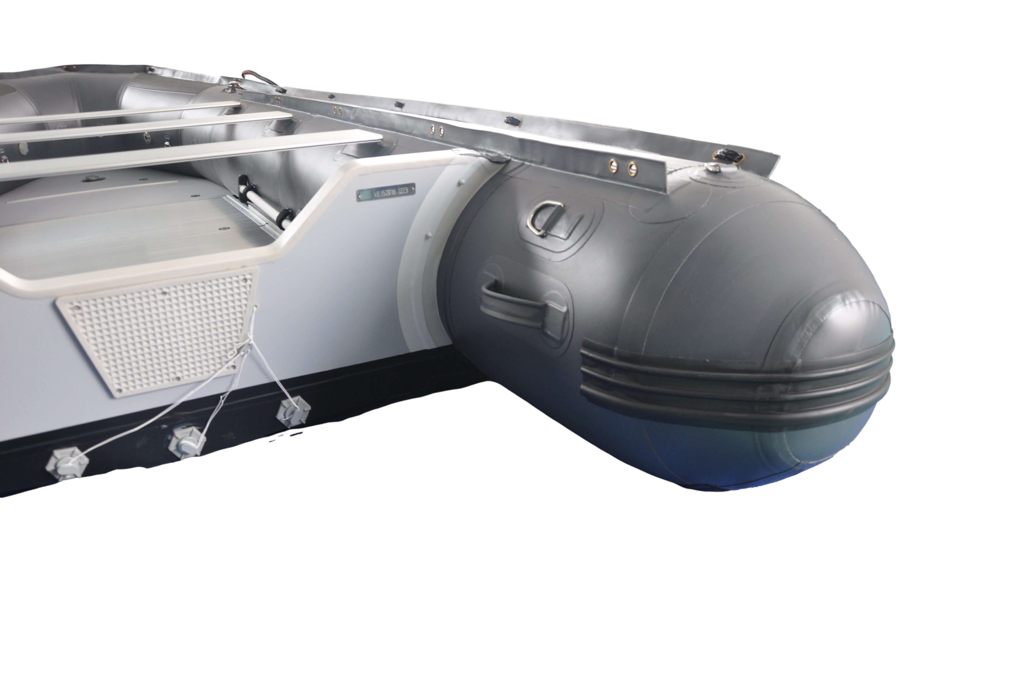 Based on extremely popular FB series of boats, our brand new 15' Saturn Heavy Duty (HD) fishing boats are made with premium quality PVC materials, extra thick top wear strips, fishing rod holders, higher buoyancy tube design, and 5 external air chambers. These new features are highly desired by those looking for maximum capacity and durability for commercial operations. The Saturn heavy-duty HD470 boat is the big brother to the HD430 model. The real value in the extra length is that it provides additional internal space to handle 1-2 additional passengers or provide added comfort and storage. This model can accommodate up to a maximum of 40 HP outboard motor, but will plane easily with a smaller 15-25 HP outboard. The HD boat tubes are produced with our advanced high-frequency heat welding construction method and also have extra-reinforced transom holders to accommodate larger motors.