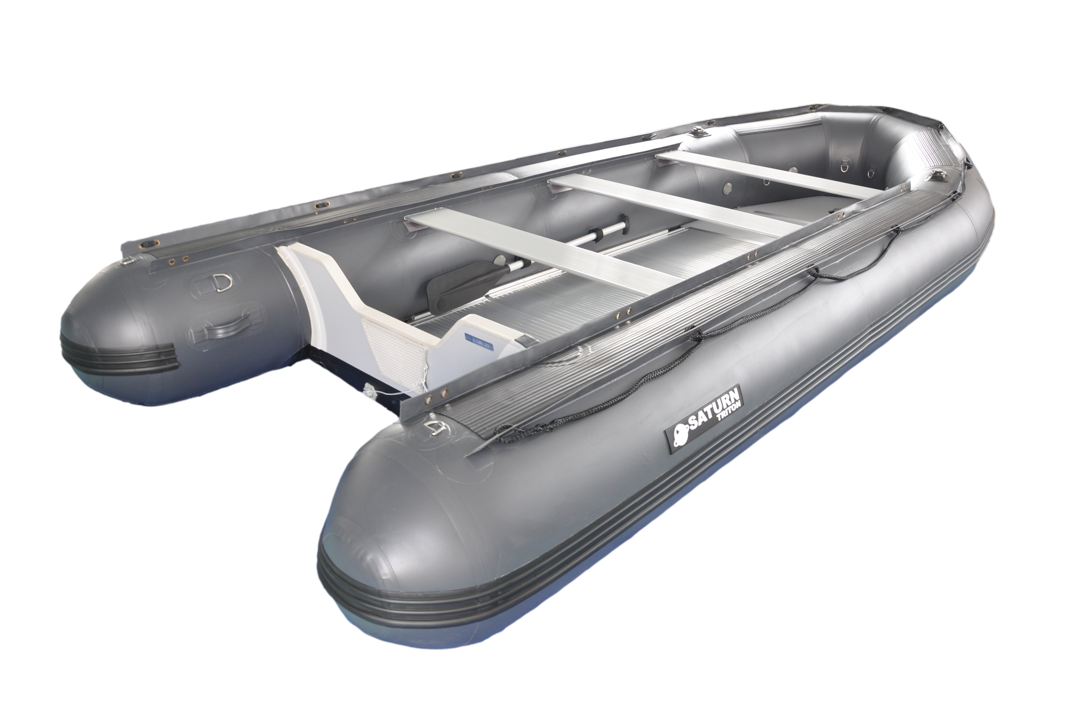 The new Saturn Fishing boats have been a hit and inventory is going fast. The new Triton models are arriving this spring and are available for preorder now! The Triton Series upgrades for 2024 represent our largest ever upgrade package and include over $500 additional value. The Triton upgrades offered for the 15' Saturn Heavy-Duty Fishing Boat include our heavy-duty 35 OZ Suijia 1.2mm 2000 Denier PVC ($300 value and nearly 50% thicker than our Standard model), UK imported Leafield D7 inflation valves ($150 value), Leafield PRV pressure relief valve ($80 value), two rod holders to use with the provided mounts (not included on the Standard model), fiberglass coated marine grade plywood transom, 2000 cc capacity 7.2psi barrel pump, and an extended 3-year warranty. The boat technical specifications are nearly identical between the Triton model (TRHD470) and our standard version (HD470). These Triton series improvements incorporate the newest technologies in inflatable boat construction and provide an incredible value for those looking to put their boat to the test. If available, this option will be listed under the "Model" selection.