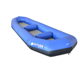 The 15'8" Saturn Triton Whitewater Raft is the product of years of research and input from commercial outfitters, guides, and experienced customers looking for the perfect raft for weeklong trips or commercial daytrips needing room for 9+ passengers. The 15'8" symmetrical design, over sized 24" diameter tubes, 96" top tangent length, and 36" bow/stern rise provide the perfect combination to maximize gear load and passenger capacity. This raft is truly customized to suit BIG Class IV+ whitewater with a gear load capacity that is unrivaled. This raft has the features to be as durable as just about anything out there! The dropstitch floor has been narrowed up about 5" to provide near instant bailing in even the toughest whitewater conditions. It's also the only whitewater raft to utilize 1.2mm PVC for the exterior tube chambers (vs. 0.9mm in our other rafts) and 1.2mm black PVC protection covering the entire bottom surface of the raft and side tubes. That protection added some weight but provides the toughest 15'+ whitewater raft you'll find under the $4000 mark. The raft is an ideal tool for your multi-day and week long trips.