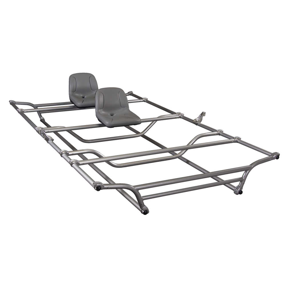 - Frame includes: Four Side Rails, two 72" Yokes, two Foot Bars, two Universal Seat Mounts, three Cross Bars, two NRS 9' straps and strap slides, two High-Back Drain-Hole Seats and a pair of 8" Oar Mounts.